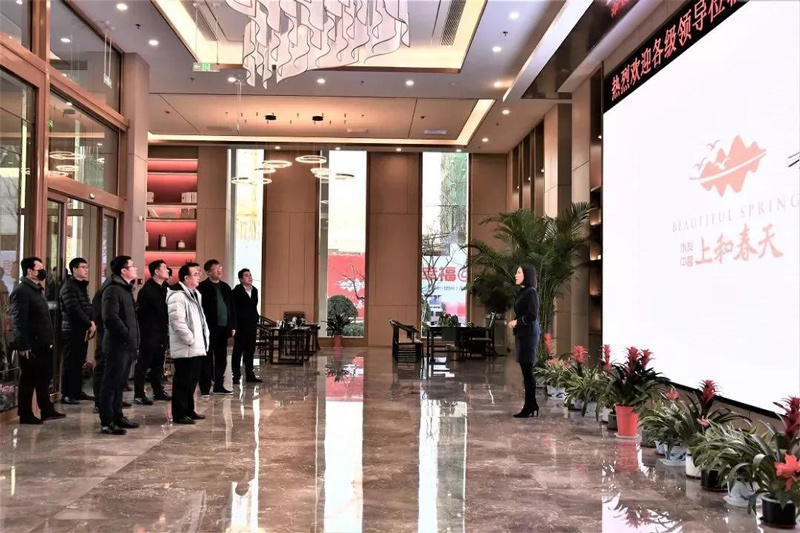 8月25日,莱州市民政局主要领导及莱州电视台相关领导考察小组到“水发中昌·上和春天”项目参观指导,水发中昌董事长蒋有城及相关条线负责人进行接待。